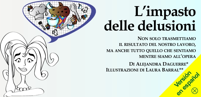 I consigli culinari sono ormai lontani: “Il successo di una ricetta dipende non solo dagli ingredienti, ma soprattutto dalle loro proporzioni e dalla preparazione; è lo chef che —con i suoi riti— dà il tocco inconfondibile che supera la condizione nutrizionale degli alimenti”. Guillermina sente e impasta dolore. Inumidisce il tutto con le sue lacrime e lo condisce con un pizzico di delusione... Non solo trasmettiamo il risultato del nostro lavoro, ma anche tutto quello che sentiamo mentre siamo all’opera. Guillermina ritiene di aver lavorato sodo, ma nessuno apprezza il suo sforzo. Pur sentendosi angosciata, si è messa a cucinare, ma nota con grande delusione che nessuno vuole provare i suoi bignè. È come se ci fosse un grande cartello immaginario che dice: «Venite a provare i deliziosi bignè fatti in casa (da sola) con ingredienti freschi e di prima qualità, preparati sotto pressione (senza rispettare i tempi) e impastati con furia appassionata. Venite a provare i deliziosi bignè della discordia! Venite! Ve li sto offrendo… Non vorrete mica che me li mangi io…».