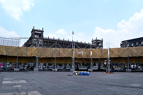 Las obras de montaje de la Feria en el Zócalo de la Ciudad de México.
