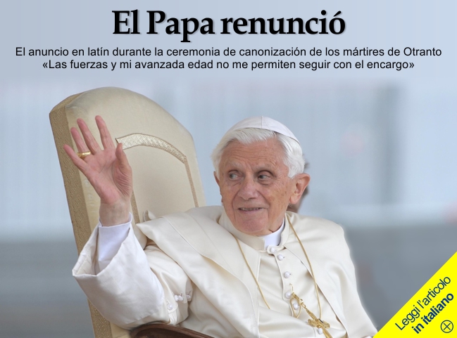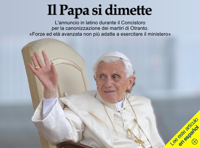 Joseph Ratzinger nació el 16 de abril de 1927 y fue elegido Papa por el Cónclave el 19 de abril de 2005, tras la muerte de Juan Pablo II. «Un anuncio totalmente inesperado», comenta el decano del Colegio Cardenalicio, Angelo Sodano, al comentar la decisión de Benedicto XVI. No se hicieron esperar, además, las reacciones políticas, empezando por el primer ministro Mario Monti: «Me impresionó sobremanera esta noticia». El flash de ANSA de las 11:46 (04:46 en la Ciudad de México), que anunció la renuncia del Papa, dio en pocos minutos la vuelta al mundo. Antes que nadie la agencia Reuters, después CNN y Al Arabiya, France Presse, las británicas Telegraph y BBC y finalmente Sky News difundieron la noticia incluso antes de la llegada de la confirmación del Vaticano. Miles de tweets sobre el tema, desde Europa hasta Asia y Oriente Medio.