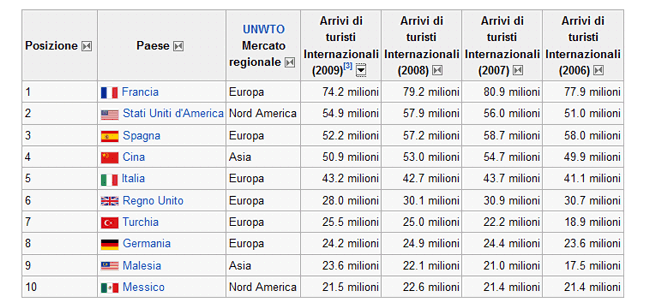 straniere): nel 2007, la Francia ha ricevuto 82 milioni di turisti stranieri;