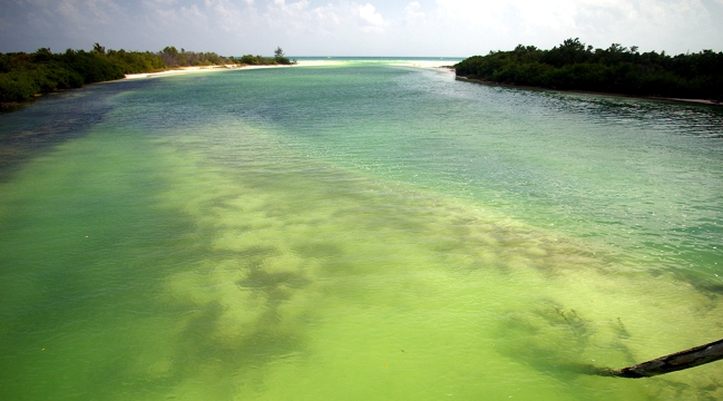 25 de julio de 2011. - Bueno, ahí está el riesgo. Existe la remota posibilidad de encontrarse con una serpiente venenosa y —aunque con aún menor probabilidad— de tropezarse con un cocodrilo. Antes de la inmersión, por lo tanto, los más precavidos deberán armarse de valor. Pero vale la pena, para vivir la experiencia única de encontrarse suavemente arrastrados por la corriente de un canal que fue excavado hace mil años por los mayas para conectar dos lagunas de aguas cristalinas y excelentes para la pesca. La ruta se encuentra entre dos paredes de manglares y el agua se mueve rápidamente. Basta con mirar hacia arriba para ver bandadas de libélulas y aves coloridas y platicadoras que brincan de rama en rama. Más altos, vuelan lentamente elegantes rapaces. El recorrido, nadando, toma más de media hora. A la llegada hay una lancha que los llevará de regreso por el canal en la dirección opuesta.