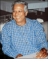 Il professor Yunus è nato nel 1940 a Chittagong, il più importante centro economico del Bengala Orientale. Terzo di 14 figli, cinque dei quali morti ancora bambini, ha studiato nella sua città poi, dopo la Fulbright, ha conseguito il dottorato all'università Vanderbilt di Nashville, nel Tennessee. Nel 1972 è diventato capo del dipartimento economico dell'università di Chittagong. Nel 1983 ha fondato la banca Grameen e nel 1997 ha presieduto a Washington la prima conferenza mondiale sul microcredito. La sua storia personale e i fondamenti del sistema della Grameen Bank sono descritti nel libro "Il banchiere dei poveri", che gli è valso numerosi premi in tutto il mondo.