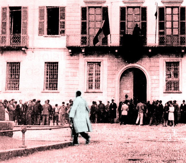Dongo, 28 aprile 1945. Ore 17 e 30. Tra qualche istante verranno fucilati i gerarchi fascisti che accompagnavano Benito Mussolini e Claretta Petacci.