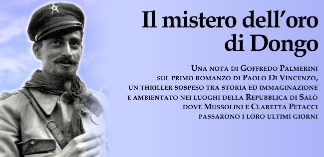 Fin qui la storia. Ma Paolo Di Vincenzo, musicologo e giornalista pescarese, da sempre alle prese con temi ed argomenti della cultura, dà una lettura tutta sua, naturalmente immaginaria, di quei fatti, ancora non del tutto chiariti, nel volume “Il mistero dell’oro di Dongo”, un thriller uscito da qualche giorno. Il giallo - un e-book per non distruggere né un albero e nemmeno una foglia - è pubblicato anche in lingua inglese, con il titolo “The Dongo treasure mystery” sul sito www.smashwords.com/books/view/151807 ed è disponibile per tutti i formati elettronici (Kindle, Ipad, pdf). La versione in inglese è invece disponibile sempre nel sito Smashwords ma a questo link: www.smashwords.com/books/view/154508. Il volume, inoltre, è acquistabile anche nella versione per i Kindle Amazon a questi link: www.amazon.com/dp/B007WPKMZO (in italiano) e www.amazon.com/dp/B007WPMSMY (in inglese). Il prezzo è volutamente molto basso, meno d’un pacchetto di sigarette (4,99 dollari, al cambio attuale 3,88 euro), solo che leggere non nuoce gravemente alla salute e magari, calandosi nelle atmosfere della storia narrata da Paolo Di Vincenzo nel suo romanzo, si passano anche un paio d’ore di spensieratezza.