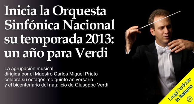 10 febbraio 2013 - L'Orchestra Sinfonica Nazionale (OSN) ha inaugurato questa settimana la stagione 2013 al Palazzo delle Belle Arti di Città del Messico con opere del francese Camille Saint-Saëns (1835-1921) e del tedesco Carl Orff (1895-1982). Durante il ciclo di presentazioni di quest'anno —che coincide con l'85° anniversario dell'OSN— gli strumentisti celebreranno il bicentenario della nascita di Giuseppe Verdi, forse il più importante e influente compositore della lirica italiana.