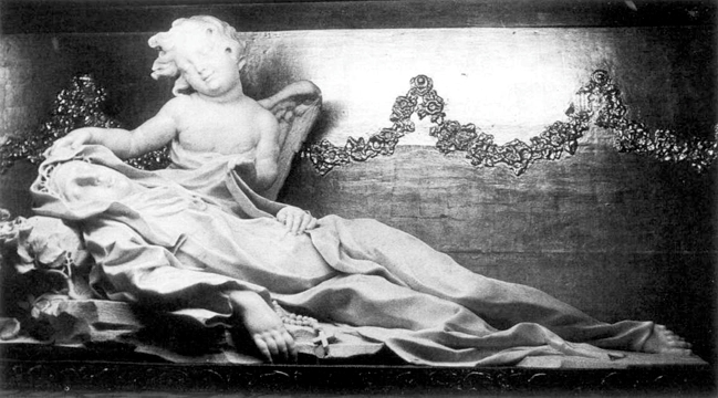 El precioso mármol, que representa a la Santa en una cama de rocas rodeada de rosas y vigilada por un ángel, es una de las obras maestras del barroco romano además de ser el único trabajo en el Perú atribuible a esta artista, que murió prematuramente a la edad de 32 años a causa de la caída de una pieza de mármol que lo golpeó fatalmente.
