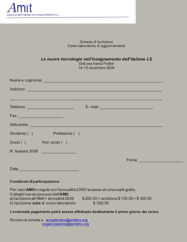 Vi chiediamo di inviare la scheda ai seguenti indirizzi di posta elettronica: accademico@amitmx.org e