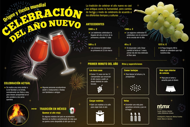 29 dicembre 2010. - La celebrazione dell'anno nuovo è antica quasi quanto l'umanità, ma le usanze sono cambiate con i tempi e le culture. Ecco alcune caratteristiche di quest'epoca dell'anno in Messico e nel mondo antico.