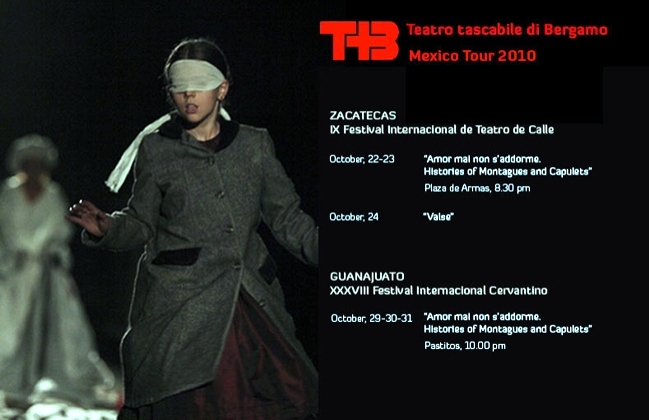 Il TTB - Teatro tascabile di Bergamo, unica compagnia italiana invitata a partecipare ai due festival, porta in Messico due spettacoli simbolo del proprio repertorio per spazi aperti: “Valse”, danza in repertorio dal 1994 costruita intorno ad una categoria-mito della cultura sociale europea, il valzer appunto, in cui si condensano elementi antropologici, cosmologici, sociali e storici; “Amor mai non s’addorme”, ultima produzione per spazi aperti (realizzata con il contributo di Regione Lombardia - Progetto Next Laboratorio delle Idee) incentrata sulle figure shakespeariane di Romeo e Giulietta, la cui legenda viene rivisitata interrogandosi su ciò che può accadere quando un classico si rovescia sulla piazza, quando è spinto fuori dal riserbo delle pagine e dalla protezione dei teatri, cosa può accadere quando l’amore non si addormenta.