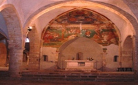 3) navata centrale: l’altare trecentesco e l’affresco della Crocifissione