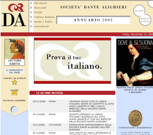 10 novembre 2006. - È iniziata solo da un giorno la nuova campagna didattica interattiva proposta dalla Società Dante Alighieri sul sito Internet www.ladante.it e già migliaia di utenti da tutto il mondo hanno colto l'occasione di testare la propria conoscenza della lingua italiana attraverso i divertenti esercizi preparati dai linguisti del PLIDA (Progetto Lingua Italiana Dante Alighieri).