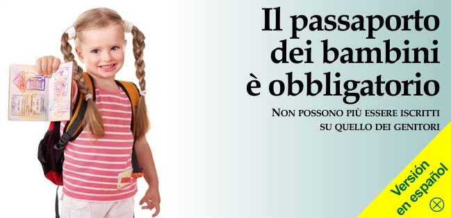 16 de octubre de 2012 - De conformidad con el Reglamento de la UE n.444/2009 —y de acuerdo con el principio “una persona, un pasaporte”— a partir del pasado 26 de junio 2012, todos los niños que viajan al extranjero deben contar con un pasaporte propio y ya no pueden estar inscritos en él de sus padres. Las nuevas normas nacen de la necesidad de luchar contra el secuestro de menores a los padres custodios de los mismos, pero —sobre todo— contra las actividades delictivas relacionadas con la trata internacional. De esta manera se asegura un mayor nivel de individualidad, y por lo tanto más seguridad, para los menores que viajan.