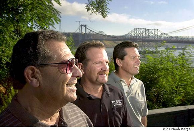 Il figlio di Al Zampa, Dick, con i suoi figli, Dick Jr. e Donald. Sullo sfondo l'Al Zampa Memorial Bridge.