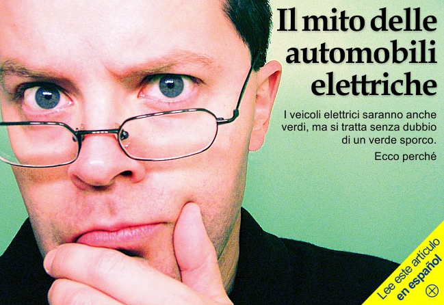Lomborg hizo cuentas: durante su ciclo de vida (calculado en 80.500 kilómetros), un coche eléctrico emite 8,7 toneladas de CO2 menos que su «primo» convencional. Ya que cada tonelada de dióxido de carbono provoca daños sociales estimados en 5 dólares, el ahorro obtenido por este tipo de vehículos es de 44 dólares por coche. «Un mal negocio también para los contribuyentes —concluye el WSJ— si se toma en cuenta el incentivo de 7,500 dólares otorgado por el gobierno de los Estadois Unidos». «La historia de siempre acerca del CO2«, contesta a favor del “partido” del auto eléctrico el ingeniero Pietro Menga, presidente de la CIVES, Comisión Italiana de los Vehículos Eléctricos. Los datos de Lomborg, según Menga, se basan en la realidad de los Estados Unidos, «donde la combinación de fuentes de las que se obtiene electricidad —explica el ingeniero— está fuertemente influenciada por el carbón. En Italia, la mezcla es más limpia: el carbón representa el 13 por ciento, mientras que las fuentes de energía renovable —solares, eólicas y geotérmicas— alcanzan el 32%».