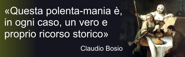 Ya prácticamente desaparecida de nuestras mesas antes de este último regreso, la polenta es un alimento que durante siglos quitó el hambre (¡literalmente!) a generaciones enteras de italianos. Ha sido, sin lugar a dudas, “el” platillo siempre presente en las mesas de mucha gente pobre. Polenta a mediodía, en la noche, e incluso en la mañana, como desayuno. Polenta, más polenta y sólo polenta. Los italianos comedores de polenta (los llamados “polentoni”) han sido y todavía son… los norteños (piamonteses, lombardos, vénetos y friulanos, en particular). “Polentone” (forma despreciativa para indicar a un habitante del norte de Italia), es un término originado por la eterna rivalidad entre el norte y el sur de nuestro país, utilizado, como se sabe, en contraposición al apelativo “terrone” (forma despreciativa para indicar a los sureños). Ambas palabras, en el lenguaje común, son de connotación casi racista y fuertemente discriminatorias. Son palabras de desprecio hacia la contraparte (norteña o sureña) contra la cual se presume una superioridad étnica y/o cultural.