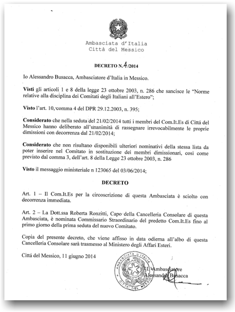 al Comité de los Italianos en el Exterior (Com.It.Es.)