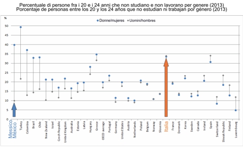países de la OCDE con el mayor porcentaje de ninis, luego de Turquía (31.3 %), Grecia