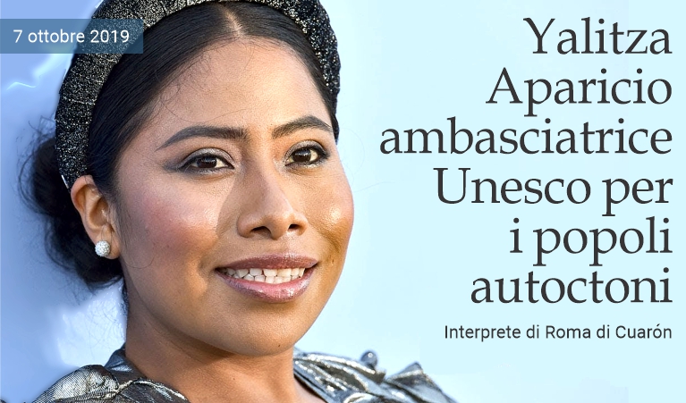 7 ottobre 2019 - L'attrice Yalitza Aparicio, unica artista messicana candidata all'Oscar per la sua interpretazione nel film Roma di Alfonso Cuarón, è la nuova ambasciatrice di buona volontà dell'Unesco per i popoli autoctoni. A nominarla è stata la direttrice generale dell'Unesco, Audrey Azoulay. Impegnata contro il razzismo, in favore dei diritti delle donne e dei popoli indigeni, Yalitza Aparicio è nata nel 1993 a Tlaxiaco, nello Stato di Oaxaca nel sud del Messico. Per interpretare il ruolo della bambinaia indigena nel lungometraggio vincitore del Leone d'oro nel 2018 —la storia di una famiglia in una Città del Messico scossa dai tumulti degli anni '70— l'attrice ha dovuto reimparare la lingua mixteca, parlata dalla famiglia paterna. Time l'ha inserita quest'anno tra le 100 personalità più influenti nel mondo. In un video per la Giornata internazionale dei popoli autoctoni 2019 ha detto che «l'odio e la discriminazione non hanno posto nel mondo. I diritti delle popolazioni indigene devono essere tutelati». (ansa.it / puntodincontro.mx / adattamento e traduzione in spagnolo di massimo barzizza)