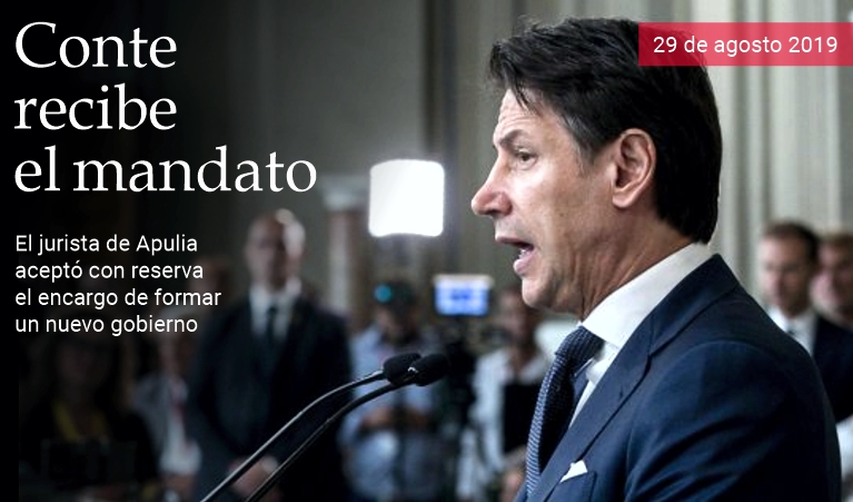 29 de agosto de 2019 - El presidente de la República, Sergio Mattarella, confirió esta mañana a Giuseppe Conte el mandato de formar el nuevo gobierno italiano. El jurista de Apulia aceptó con reserva, por lo que verificará con las fuerzas políticas representadas en el Parlamento —principalmente M5S y PD— la posibilidad de concluir con éxito las negociaciones iniciadas en los últimos días. Ya hoy se reunirá con los partidos. «Será un gobierno de novedades» —dijo el primer ministro encargado— «En los próximos días volveré al Quirinal para disolver la reserva y, en caso positivo, proponer la lista de ministros». (massimo barzizza / puntodincontro.mx)