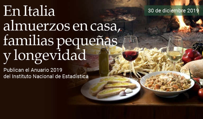 30 de diciembre de 2019 - «Italia aún está lejos de la difusión generalizada del modelo basado en la comida rápida consumida fuera del hogar», señala el ISTAT en el Anuario estadístico italiano 2019, publicado hace unas horas. «Los datos relativos a 2018» —continúa el texto del organismo de investigación— «muestran que, de hecho, el almuerzo sigue siendo en la mayoría de los casos la comida principal (66.8% de la población de 3 años y más) y muy a menudo se consume en el hogar (71.9%), lo que permite una elección más cuidadosa de los alimentos y una composición más atenta de los ingredientes en comparación con las comidas que se consumen fuera del hogar». El volumen también presenta una síntesis elocuente de la situación italiana en el contexto de la evolución de la familia y de a población: «Las familias, 25 millones y 700 mil, son cada vez más numerosas y cada vez más pequeñas», explica el Instituto. «El número promedio de miembros ha pasado de 2.7 (promedio de 1997-1998) a 2.3 (promedio de 2017-2018), sobre todo debido al aumento en las familias de un solo miembro, que han crecido en más de 10 puntos porcentuales en veinte años: de 21.5% en 1997-98 a 33.0% en 2017-2018, o un tercio del número total de familias». En 2018 continúa la disminución de los nacimientos: los nacidos vivos, que en 2017 fueron de 458,151, en 2018 sólo alcanzaron los 439,747, un nuevo mínimo histórico desde la unificación de Italia en 1861». También en 2018, el anuario enfatiza que «el número de muertes disminuye y alcanza las 633,133 unidades». La esperanza de vida promedio al nacer «comienza a aumentar nuevamente, llegando a 80.8 años para los hombres y 85.2 para las mujeres en 2018». Todo esto hace que «Italia sea uno de los países más viejos en el mundo, con 173.1 personas de 65 años o más por cada cien personas menores de 15 años al 1 de enero de 2019». El Anuario estadístico italiano recopila información organizada en 24 capítulos que abarcan áreas temáticas que caracterizan la vida pública nacional: el medio ambiente y el territorio, la población, la educación y el empleo, el marco económico y la producción, el comercio internacional y las finanzas públicas, la oferta de servicios, el bienestar de los ciudadanos, la cultura y la investigación. (massimo barzizza / puntodincontro.mx)