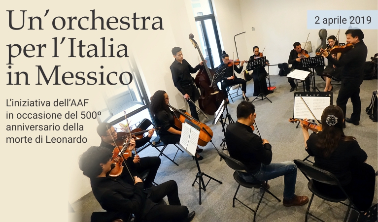 2 aprile 2019 - La Academia de Arte de Florencia celebra il 500° anniversario della morte di Leonardo da Vinci con un progetto di grande rilevanza. Indubbiamente, la creazione di un'orchestra da camera che rappresenti l'Italia e porti il nome di uno degli artisti e scienziati più amati e riconosciuti nel mondo è un'idea non solo originale, ma anche di grande rilevanza per il suo potenziale impatto sul “Sistema Italia”, l'insieme delle istituzioni, associazioni e aziende del Bel Paese presenti in Messico. «Avere un'orchestra da camera all'Academia de Arte de Florencia (AAF) è un obiettivo molto importante per un'istituzione come la nostra, che vuole offrire valore aggiunto al patrimonio culturale del Messico, dal punto di vista della formazione e della produzione artistica», ha spiegato il rettore e presidente dell'AAF, Fabio Caselli. «C'è interesse» —ha aggiunto— «da parte di diverse aziende italiane per la sponsorizzazione. Questo ci permetterebbe di crescere nel tempo e partecipare ad eventi importanti in cui sia appropriata la presenza del nostro Paese». Il direttore principale dell'orchestra è il maestro Aarón Jiménez, violinista riconosciuto come uno dei musicisti più completi in terra azteca, poiché, oltre alla sua solida preparazione in campo classico, è uno dei principali esponenti della musica folcloristica messicana. Il repertorio che l'orchestra Leonardo Da Vinci intende sviluppare comprende composizioni di Mozart, Beethoven e Vivaldi, oltre a brani di musica pop internazionale e della tradizione messicana. Il primo concerto di presentazione si terrà venerdì 5 aprile alle ore 17:00 presso la sede dell'Istituto Italiano di Cultura di Città del Messico, Francisco Sosa 77, Coyoacán. L'ingresso sarà gratuito.