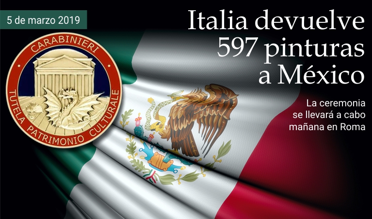 5 de marzo de 2019 - Mañana, miércoles 6 de marzo, a las 11.15, se llevará a cabo en Roma en la Sala della Crociera del Ministerio del Patrimonio y Actividades Culturales, la ceremonia de restitución de 594 pinturas exvoto —creadas como agradecimiento por benevolencias recibidas— sustraídas ilegalmente del patrimonio cultural mexicano y exportadas irregularmente a Italia. Estarán presentes el Ministro del Patrimonio y Actividades Culturales, Alberto Bonisoli, la Secretaria de Cultura de México, Alejandra Frausto Guerrero, el director general del Instituto Nacional de Antropolgía e Historia, Diego Prieto Hernández, y el Comandante de los Carabineros para la Protección del Patrimonio Cultural (CPT), Fabrizio Parrulli. Hace poco menos de un año fue constituida la Unidad de Tutela del Patrimonio Cultural de la División de Gendarmería de la Policía Federal mexicana, creada con base en el modelo del CPT gracias a un acuerdo de colaboración firmado el 18 de enero de 2017. (massimo barzizza / puntodincontro.mx)