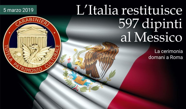 5 marzo 2019 - Domani, mercoledì 6 marzo, alle ore 11.15, si terrà a Roma presso la sala della Crociera del Ministero per i beni e le attività culturali, la cerimonia di restituzione di 594 dipinti ex voto —creati come ringraziamento per benevolenze ricevute— illecitamente sottratti al patrimonio culturale messicano ed esportati illegalmente in Italia. Saranno presenti il ministro per i Beni e le attività culturali, Alberto Bonisoli, il ministro della Cultura degli Stati Uniti Messicani, Alejandra Frausto Guerrero, il direttore generale dell'Istituto nazionale di antropologia e storia, Diego Prieto Hernández, e il Comandante dei Carabinieri per la Tutela del Patrimonio Culturale (CPT), Fabrizio Parrulli. Poco meno di un anno fa è stata costituita la Unidad de Tutela del Patrimonio Cultural della Divisione di Gendarmeria della Polizia Federale messicana, creata sul modello del CPT grazie a un accordo di collaborazione sottoscritto il 18 gennaio 2017. (massimo barzizza / puntodincontro.mx)