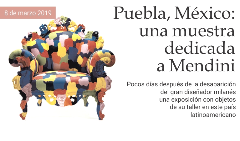 6 de marzo de 2019 - Tras el reciente fallecimiento de Alessandro Mendini, el próximo 14 de marzo se inaugurará, en San Pedro Museo del Arte de Puebla, la exposición inédita “Noción estética y gramática visual”, que exhibirá parte del legado de quien es considerado uno de los principales renovadores del diseño italiano, en su papel de intelectual teórico y miembro destacado del grupo Alchimia. Curada por Studio Sesma, la muestra reúne 25 años de creaciones y cuenta con alrededor de 100 objetos de diseño y de mobiliario, que sentaron las bases del estilo Mendini y que llegan a México para rendir homenaje póstumo a un ícono del diseño y la arquitectura contemporánea. La exposición se realiza en el marco del día internacional del diseño italiano, con el apoyo de la Embajada de Italia en México, del Ministerio italiano de Relaciones Exteriores, del Instituto Italiano de Cultura y de Advento A.C. La obra del Atelier Mendini tiene sus raíces en la cultura popular y kitsch. Abarca un periodo que inicia en la época del movimiento “Radical Design” —piezas anárquicas, lejanas a la producción industrial y a la funcionalidad— hasta las colaboraciones con empresas internacionales como Alessi, Cappellini, Magis, Bisazza, Venini, Cartier, Swatch, Swarovski y Samsung. El póster del evento muestra una de las creaciones más famosas del artista milanés: es el Sillón de Proust, nacido de inspiraciones literarias y pictóricas vinculadas al escritor francés y definido por el mismo Mendini como un objeto «que no es artesanía, no es diseño, no es pintura, no es escultura, sino la negación de todas estas cosas». El reconocido artista multidisciplinario mexicano Raymundo Sesma, explica: «En sus últimos años, Alessandro Mendini concibió al diseño como expresión de un nuevo arte popular contemporáneo, tratando de democratizarlo mediante la serialización, para alcanzar una mayor audiencia». La muestra estará abierta al público del 14 marzo al 15 de mayo, en el horario general del San Pedro Museo del Arte, ubicado en la calle 4 Norte 203 del centro histórico de la ciudad de Puebla. (massimo barzizza / puntodincontro.mx)