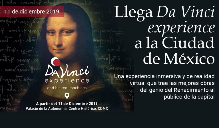 11 de diciembre de 2019 - A partir de hoy, la exposición multimedia “Da Vinci Experience” abrirá sus puertas al público en el Palacio de la Autonomía del centro histórico de la Ciudad de México, en un evento que se suma a las conmemoraciones mundiales del 500 aniversario de la muerte del genio italiano del Renacimiento. La muestra, realizada por la empresa Crossmedia Group bajo la curaduría de Roberta Barsanti, ofrecerá a los visitantes una experiencia tecnológica y artística que incluye proyecciones a 360 grados y realidad virtual. El proyecto prevé también la exposición de máquinas en escala real diseñadas por el propio Leonardo que, debido a trámites aduanales, serán integradas la próxima semana. En conferencia de prensa, el embajador de Italia en México, Luigi De Chiara, destacó que Leonardo fue un científico, técnico, ingeniero, arquitecto, urbanista, pintor, poeta, escultor y paisajista «no hay campo del ingenio y del arte humano» —subrayó— «donde da Vinci no nos haya dejado testimonio de su excelencia e ingenio». Marco Márica, director del Instituto Italiano de Cultura, señaló que es muy difícil hacer una muestra sobre el artista ya que, aunque se procure abarcar todos los aspectos de su vida y carrera, «siempre se queda corta la exposición, siempre falta algún elemento de su capacidad y creatividad». «Esta es la manera más interesante de rendirle homenaje» —continuó Márica— «porque Leonardo fue un innovador, un genio y un inventor» y, sostuvo, «una exposición multimedia, inmersiva, moderna y contemporánea va al núcleo de lo que fue su personalidad, una personalidad que miraba al futuro». La exposición estará abierta hasta el 16 de febrero del 2020. (massimo barzizza / puntodincontro.mx)