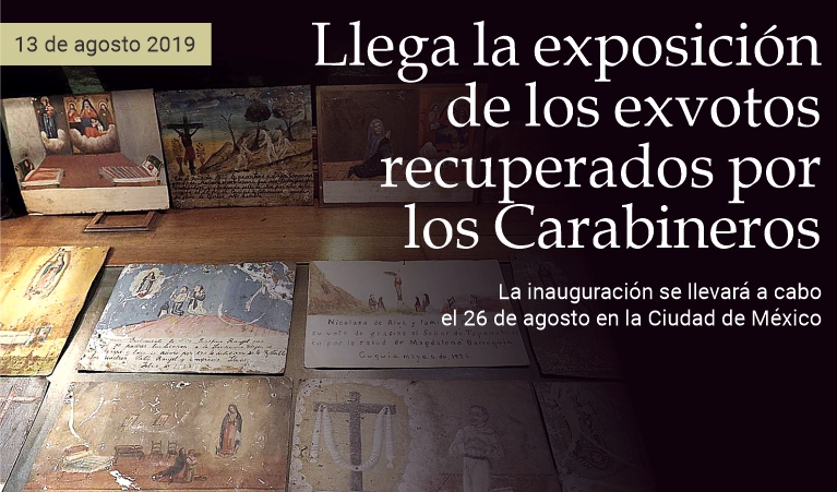 13 de agosto de 2019 - El 26 de agosto, a las 19:00 hrs., será inaugurada en el Museo Nacional de las Culturas del Mundo de la Ciudad de México la exposición de los 594 exvotos recuperados en Italia por el Comando de Carabineros para la Protección del Patrimonio Cultural y devueltos al país latinoamericano el pasado 6 de marzo. El evento es un nuevo testimonio de la excelente cooperación entre Italia y México, que —en el contexto de las investigaciones contra el robo y el tráfico de obras de arte— ha visto al Arma dei Carabinieri a la vanguardia con su comando especializado. Esta unidad protagonizó las actividades de capacitación realizadas en el país latinoamericano a favor de la Policía Federal / Gendarmería, para las cuales fue enviado un oficial de enlace, el Capitán Stefano Carella, quien desarrolló una amplia red de colaboración con las autoridades policiales y con las Fuerzas Armadas mexicanas, con el fin de capacitar a los elementos locales en varios sectores de alto perfil para la seguridad pública. Con la extinción de la Policía Federal, estas unidades están confluyendo bajo el mando y la responsabilidad de la Guardia Nacional, con la cual «podríamos llevar a cabo actividades de cooperación en el sector doctrinal, de capacitación y de formación técnica y operativa», dijo Carella a Puntodincontro. Estarán presentes en la inauguración la Secretaria de Cultura de México, Alejandra Frausto, el Encargado de Negocios de la Embajada de Italia en México, Simone Landini y, en representación del Comandante General de los Carabineros Giovanni Nistri, el General de División Claudio Vincelli, acompañado por el mayor Lanfranco Disibio, comandante del núcleo TPC de Florencia, quien capacitó personalmente a los funcionarios de la Policía Federal dedicados a la protección del patrimonio cultural. La agenda de la delegación italiana incluye reuniones con representantes de las Secretarías de Cultura y Seguridad Pública, así como con altos funcionarios de la Guardia Nacional. (massimo barzizza / puntodincontro.mx)