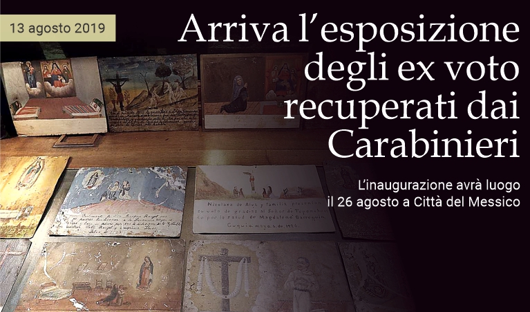 13 agosto 2019 - Il 26 agosto, alle ore 19, sarà inaugurata al Museo Nacional de las Culturas del Mundo di Città del Messico l'esposizione dei 594 ex-voto recuperati in Italia dal Comando Carabinieri Tutela Patrimonio Culturale e restituiti al Paese latinoamericano il 6 marzo scorso. L'evento è una nuova testimonianza dell’eccellente cooperazione tra l'Italia e il Messico, che —nell'ambito delle indagini contro il furto e il traffico di opere d’arte— ha visto in prima linea l’Arma dei Carabinieri con il suo comando specializzato. Tale reparto è stato al centro delle attività formative svolte nel Paese latinoamericano a favore della Policía Federal/Gendarmería, per le quali fu inviato un ufficiale di collegamento, il Capitano Stefano Carella, che ha sviluppato una vasta collaborazione con le autorità di Polizia e con la Forze Armate messicane, per l’addestramento e la formazione delle unità locali in diversi settori di alto profilo per la sicurezza pubblica. Con l’estinzione della Policía Federal, tali unità stanno confluendo sotto il comando e la responsabilità della Guardia Nacional, con la quale «vi è l’auspicio di svolgere attività di cooperazione nel settore dottrinale, dell’addestramento e della formazione tecnico-operativa», ha detto Carella a Puntodincontro. Parteciperanno all'inaugurazione il ministro messicano della Cultura, Alejandra Frausto, l'Incaricato d'Affari dell'Ambasciata d'Italia in Messico, Simone Landini e, su delega del Comandante Generale dei Carabinieri Giovanni Nistri, il Generale di Divisione Claudio Vincelli, accompagnato dal Maggiore Lanfranco Disibio, Comandante del nucleo TPC di Firenze, che ha addestrato personalmente i funzionari della Policía Federal dedicati alla tutela del patrimonio culturale. L’agenda di lavoro della delegazione italiana prevede incontri con rappresentanti dei ministeri della Cultura e della Pubblica sicurezza, nonché alti ufficiali della Guardia Nacional. (massimo barzizza / puntodincontro.mx)