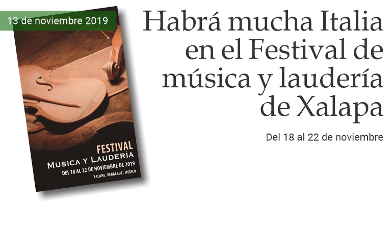 13 de noviembre de 2019 - Del 18 al 22 de noviembre se llevará a cabo en Xalapa el Festival de Música y Laudería 2019, evento que pretende generar un espacio de diálogo e intercambio cultural para potenciar la producción y creatividad en los campos de la música y de la laudería en esta ciudad, capital del Estado de Veracruz, así como promover la armonía en la diversidad cultural mediante conciertos, exposiciones, conferencias, talleres, huapangos y fandangos. En la programación se han incluido lauderos y artistas de Xalapa y su área metropolitana, profesionales de instituciones nacionales, así como la participación de una delegación institucional italiana que incluirá a Fabio Caselli, presidente y rector de la Academia de Arte de Florencia, Luca Galizia, director de la Sociedad Dante Alighieri de la Ciudad de México, Gianluca Brocca, presidente del Com.It.Es. mexicano, Marco Marica, director del Instituto Italiano de Cultura, Emilia Giorgetti, agregada científica de la Embajada de Italia en México, Paolo Malfitano, gerente de proyectos en la Agencia ITA / ICE de la Ciudad de México, Riccardo Caffarella, miembro de la Asociación de Investigadores italianos en México, y Massimo Barzizza, director de Puntodincontro. El Bel Paese participará con un concierto de la violonchelista Nadege Rochat, interpretado con un violonchelo Stradivari propiedad de la AAF que se exhibirá durante dos días, una exposición —hasta finales de enero de 2020— de las obras del pintor florentino Mario Minarini, conferencias magistrales y talleres. México posee una gran diversidad cultural, la cual ha sido enriquecida a lo largo de su historia. Conforman su identidad las poblaciones originarias, afrodescendientes, europeas y las de migraciones que han arribado. Veracruz y su puerto fueron la entrada principal a la Nueva España, sin embargo también son sitios típicamente caribeños, por lo que desde el siglo XVI pertenecen a un interesante circuito de intercambio cultural. Xalapa es un municipio cuyo nombre deriva de la palabra náhuatl xailapan, que significa manantial en la arena. Alexander von Humboldt la nombró “Ciudad de las flores” y desde el siglo XIX ha gozado de gran prestigio por las diversas instituciones que en ella se han fundado, por lo que es conocida también como la “Atenas veracruzana”. Ya sea de manera independiente o institucional, la música en Xalapa se promueve, interpreta y produce en varios géneros, como clásico, jazz y tradicional, entre otros. De igual forma, la laudería se desarrolla en varias vertientes: principalmente se construyen jaranas jarochas y huastecas, guitarras de son y quintas huapangueras, leonas y arpas, así como guitarras clásicas e instrumentos de cuerda frotada (violines, violas, violonchelos y contrabajos). Actualmente, el municipio de Xalapa es un territorio ideal para la creatividad, la expresión artística y el desarrollo profesional y se ha transformado en uno de los lugares de residencia preferidos de lauderos y artistas que se presentan en foros nacionales e internacionales. (massimo barzizza / puntodincontro.mx)
