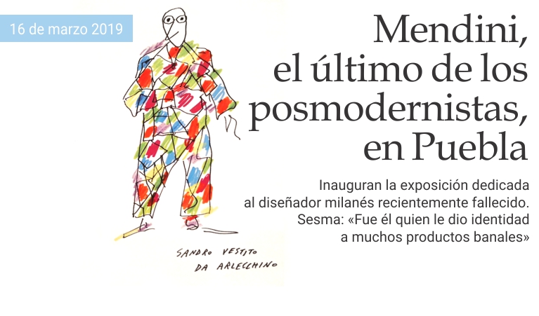 Puebla, México, 14 de marzo de 2019. Raymundo Sesma presenta la exposición “Noción estética y gramática visual”, dedicada a Alessandro Mendini. Video de Marcela López Enríquez. «Por una u otra razón, la iniciativa no se había podido concretar» —dijo Sesma durante la ceremonia de inauguración— «hasta que se presentó la oportunidad de montarla aquí en Puebla». «Es un evento» —añadió Riccardo Cannelli, experto cultural del IIC— «que la Embajada quiso apoyar. El Embajador Maccotta ha seguido desde el principio el desarrollo de esta exposición y, hasta octubre, teníamos la esperanza que el propio Mendini pudiese estar presente hoy, acompañando en persona a su gran amigo Raymundo. Sabemos que hasta los últimos días de su vida siguió manteniéndose al tanto de cómo iban los preparativos». «Mendini» —continuó Cannelli— «amaba este país y su diseño y pensaba que era posible crear unos lazos muy fuertes entre Italia y México. El trabajo de Sesma, su curaduría y las creaciones de Alessandro son un gran impulso para seguir este camino de colaboración entre dos países que tienen una sensibilidad muy parecida con respecto al arte, a la cultura y a la belleza». La exposición reúne una selección de obras provenientes del Atelier Mendini de Milán, muchas de las cuales se exponen en el Museo de Arte Moderno de Nueva York.