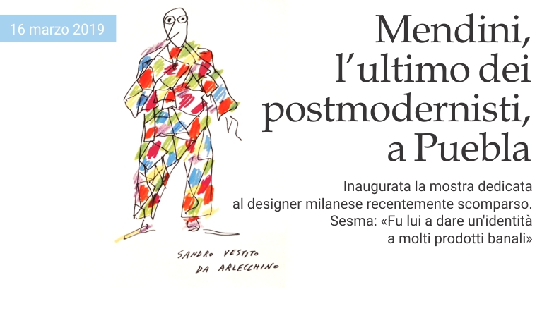 16 marzo 2019 - Nella splendida cornice del San Pedro Museo de Arte di Puebla, sede dell'omonimo ospedale durante il periodo vicereale, è stata inaugurata giovedì la mostra Noción estética y gramática visual, che espone parte del lascito di Alessandro Mendini, uno dei i principali rinnovatori del design italiano. Il giorno della sua morte, lo scorso 18 febbraio, Francesca Oddo lo ha descritto nelle pagine della rivista Abitare come «un creativo a tutto tondo capace di mettere in discussione il design derivato dalle istanze funzionaliste e di proporre un mondo di oggetti, dotati di contenuti emozionali e spirituali, di vocazione al sogno». Da più di un anno l'artista messicano Raymundo Sesma —che ha conosciuto Mendini a Milano circa 15 anni fa— aveva iniziato a lavorare nell'organizzazione di una mostra in Messico dedicata ai suoi contributi nel campo del design e dell'architettura, supportato dall'Ambasciata d'Italia e dall'Istituto Italiano di Cultura (IIC).