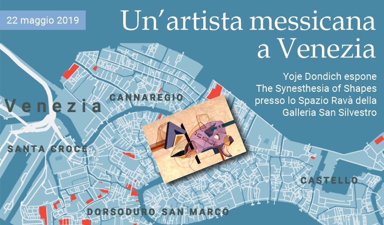 22 maggio 2019 - È in mostra fino al 17 luglio —nello Spazio Ravà della Galleria San Silvestro di Venezia— The Synesthesia of Shapes, dell'artista messicana Yoje Dondich. Dopo il successo a al Palazzo Giureconsulti di Milano, l'esposizione è stata inserita nel programma di eventi collaterali della 58° Mostra internazionale d'Arte della Biennale. Una selezione di 14 opere è la base per l'analisi delle diverse esplorazioni formali sviluppate dalla Dondich attraverso la pittura. The Synesthesia of Shapes offre esperienze nelle quali lo spettatore utilizza i sensi per materializzare la sensibilità, in perfetta sintonia con il tema centrale della Biennale proposto dal curatore Ralph Rugoff: May You Live in Interesting Times. Yoje Dondich (Città del Messico, 1952) ha studiato psicologia, design, logoterapia e arredamento d'interni. Si è formata artisticamente con maestri del calibro di Rolando Belfai, Isaac Stavans e Manuel Guillén. All'inizio della sua carriera ha usato il disegno per creare opere di forte tendenza surrealistica, successivamente materializzate anche in dipinti ad olio. Recentemente, tuttavia, il suo stile ha assunto una svolta radicale verso il campo dell'astrazione, con creazioni che corrispondono a un momento di ricerca formale e cromatica, dove colore, linea e tratto sono i protagonisti principali. The Synesthesia of Shapes, presentata da Must Wanted Group, è un'iniziativa supporata dall'Ambasciata del Messico in Italia, il Consolato del Messico a Milano e l'Istituto Nazionale delle Belle Arti e Letteratura.