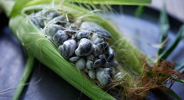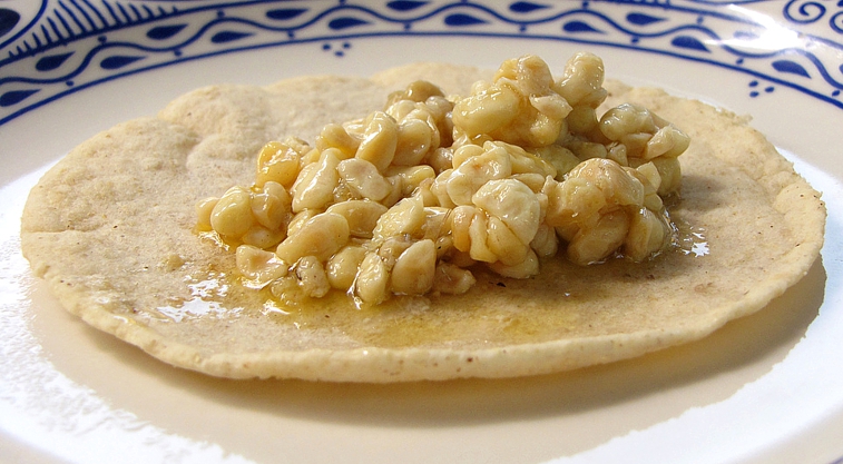 27 de septiembre de 2019 - La excéntrica creatividad gastronómica mexicana se manifiesta, entre muchos otros ejemplos, también en la transformación en manjar de un hongo del maíz que en el resto del mundo se destruye como plaga: el huitlacoche. Llamado por algunos “trufa mexicana” e identificado con el nombre científico Ustilago maydisl, se usa como alimento y como ingrediente para preparar harina para tortillas. Tiene pocas calorías, varios aromas, —entre los que se encuentra la vainillina— y los investigadores han encontrado en él tres de los cuatro aminoácidos relacionados con el umami, uno de los cinco sabores básicos —junto con el dulce, el salado, el amargo y el agrio— percibidos por las células receptoras especializadas presentes en el cavidad oral humana. Su delicado sabor ha dado lugar a recetas combinadas con otras expresiones conocidas de la cocina internacional como, por ejemplo, las “crepas de huitlacoche”, generalmente servidas con bechamel o salsa de chile poblano. Se prepara principalmente guisado con ajo y epazote —una hierba ampliamente utilizada en la cocina mexicana— y también se usa en sopas, quesadillas, tacos y huevos.