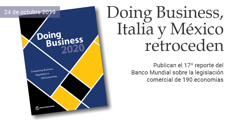24 de octubre de 2019 - Italia y México pierden lugares en el reporte Doing Business 2020 del Banco Mundial, que evalúa la facilidad para llevar a cabo iniciativas empresariales en 190 países del mundo. Con respecto a los resultados obtenidos el año pasado, el Bel Paese descendió 7 puestos —del lugar 51 al 58— mientras que la nación latinoamericana retrocedió 6, colocándose en el sitio 60 de la tabla. Italia y México obtuvieron respectivamente 72.8 y 72.4 de calificación, mientras que a Nueva Zelanda —que se colocó en el primer lugar— se asignó un puntaje de 86.8. El reporte analiza 10 indicadores: apertura de una empresa, manejo de permisos de construcción, obtención de electricidad, registro de propiedades, obtención de crédito, protección de los inversionistas minoritarios, pago de impuestos, comercio transfronterizo, cumplimiento de contratos y resolución de la insolvencia. El Banco Mundial resalta que las 10 economías en las que la facilidad para hacer negocios mejoró en mayor medida fueron Arabia Saudita, Jordania, Togo, Bahrein, Tayikistán, Pakistán, Kuwait, China, India y Nigeria. México es el segundo país mejor evaluado en América Latina, superado por Chile, el cual se ubicó en el lugar 59. (massimo barzizza / puntodincontro.mx)