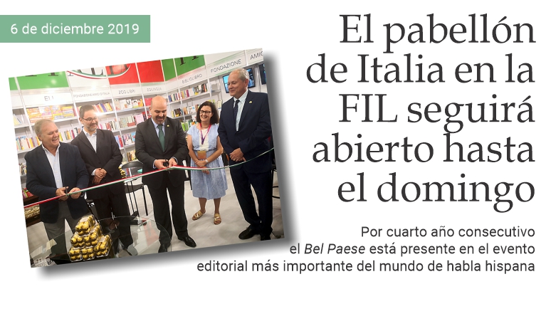 6 de diciembre de 2019 - El stand de Italia en la Feria Internacional del Libro de Guadalajara permanecerá abierto al público hasta el domingo 8 de diciembre a las 20:00 hrs. El martes pasado, durante la ceremonia de corte del listón, Dino Poli, vicepresidente del Com.It.Es. mexicano y presidente de la Fundación Amici d'Italia, dijo: «Quiero agradecer a los escritores por ser parte de este pabellón, un agradecimiento especial a los autores que vienen de Italia por su entusiasmo, su cooperación y por su interés en hacer negocios con México». «Gracias también al Cónsul Toticchi, al Secretario General del Gobierno del Municipio de Guadalajara, Víctor Sánchez Orozco, siempre presente en los eventos de la Fundación Amici d'Italia, a Alessandra Zecchini, que nos visita representando al Com.It.Es. neozelandés, y sobre todo a los consejeros del Comité de Italianos en el Exterior de México que siempre nos acompañan en la FIL, encabezados por el presidente Gianluca Brocca. En esta ocasión, vienen de la Ciudad de México, del Estado de México, de Nuevo León y de Veracruz». Fabio Toticchi, cónsul honorario de Italia en los estados de Jalisco y Colima, subrayó que «Este stand es el resultado de un gran esfuerzo por parte de los organizadores y la gran cantidad de gente que veo aquí presente confirma la relevancia de esta iniciativa». Víctor Sánchez recordó que la FIL es la segunda feria de libros más grande del mundo [después de la de Fráncfort, en Alemania, nota del redactor] y afirmó que en México la literatura y la lengua italiana son consideradas de gran importancia. Finalmente, el presidente del Com.It.Es., Gianluca Brocca, dijo: «Este pabellón contribuye sin duda, gracias al esfuerzo de Dino Poli, de los organizadores y de los patrocinadores, a acercar aún más a México e Italia». (massimo barzizza / puntodincontro.mx)