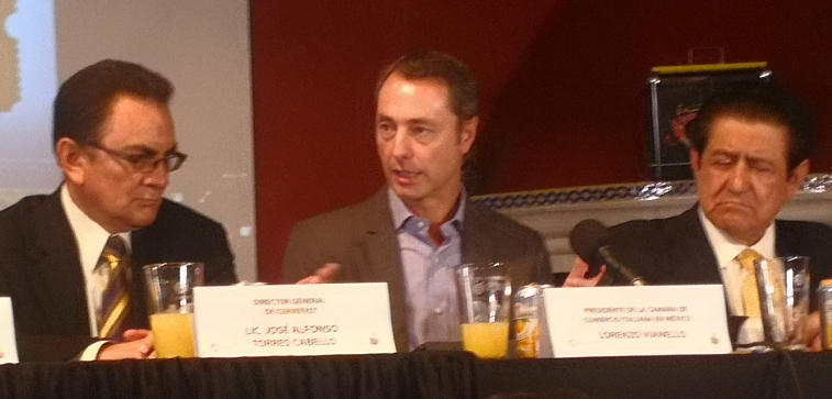 De izquierda a derecha: José Alfonso Torres Cabello, Lorenzo Vianello y Armando Bojórquez Patrón durante la presentación. «La Cámara de Comercio Italiana» —continuó Vianello— «tiene como objetivo el fortalecimiento de las relaciones económicas entre nuestros países y en los tres días de la feria vamos a tener una muy buena participación con varios expositores, entre los cuales destacan Caulier, importador de la birra artigianale Toccalmatto —la más importante de su tipo en Italia—, Doce Columnas, importador de la birra artigianale Baladin así como de Peroni y Nastro azzurro —dos de las cervezas industriales más antiguas de nuestras tierras—, Impresit, también con cerveza artesanal, e Impoveneto, con Birra Poretti». «Habrá, además, importadores y productores de alimentos como Los Sabores del Chef Giuseppe —con pastas, lasaña, limoncello, etc.—, Porkit, con porchetta —un platillo típico del centro de Italia a base de carne de cerdo—, helados de Frozzeto, pasta fresca del Chef Mauricio de Trattoria Palacio. Giuseppe Miele de la Piccola Trattoria —una referencia importante para quienes comen pizza en Polanco— preparará panini con salchichas condimentados con una hierba típica de la zona de Nápoles y, finalmente, Joshua Serrano —ganador en 2017 del Campeonato Mexicano de la Pizza— preparará pizza frita». La 8ª edición de la Feria Internacional de la Cerveza —Cervefest CdMx— se realizará los días 15, 16 y 17 de marzo de 2019 en el Deportivo Club Acalli, Camino Antiguo a Cuemanco S/N, Col. Barrio Concepción Tlacoapa, C.P. 16034, Xochimilco Ciudad de México. Los organizadores esperan la participación de alrededor de 30 mil personas a lo largo de todo el fin de semana. (massimo barzizza / puntodincontro.mx)