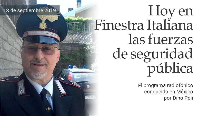 13 de septiembre de 2019 - Hoy Dino Poli, productor y conductor del programa radiofónico Finestra Italiana, entrevistará en el estudio al Carabinero Guglielmo Filippo Finotti, quien hablará sobre las fuerzas de seguridad pública del país de la bota. Finestra Italiana se transmite todos los viernes en México de 1:00 a 2:00 pm (de 8:00 a 9:00 pm hora italiana) en las frecuencias 96.3 FM y 630 AM en Guadalajara, 91.9 FM y 1080 AM en Puerto Vallarta y 107.1 FM en Ciudad Guzmán. El programa puede ser sintonizado también por los usuarios de Internet de todo el mundo a través del enlace jaliscoradio.com. (massimo barzizza / puntodincontro.mx)