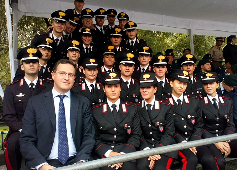 L'incaricato d'Affari dell'Ambasciata d'Italia in Messico, Simone Landini, con il plotone dei Carabinieri in occasione della cerimonia al monumento ai Niños Héroes il 13 settembre. (massimo barzizza / puntodincontro.mx)