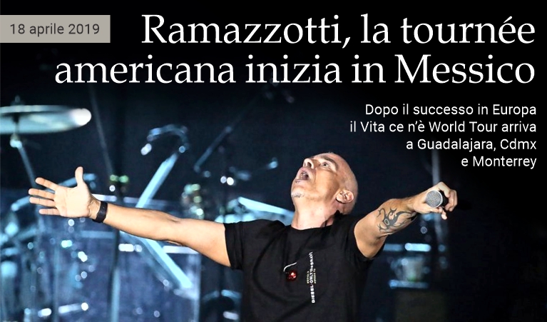 18 aprile 2019 - Eros Ramazzotti è tornato in concerto nelle arene più importanti del mondo per festeggiare 35 anni di carriera, con una nuova avventura dalla produzione internazionale e un allestimento innovativo. Dopo il successo della prima fase della tournée Vita ce n'è (Hay vida, in spagnolo), terminato lunedì scorso con un concerto a Vienna, il 14 maggio Eros inizierà la seconda fase in Messico (14 Guadalajara ore 21 Auditorium Telmex, 16 Città del Messico ore 20.30 Auditorium Nazionale, 18 Monterrey ore 21 Auditorium Citibanamex) per poi arrivare negli Usa, a Panama, in Brasile, Cile, Argentina, Canada e il 18 giugno sul palco del Radio City Music Hall di NY, già calcato dall'artista romano nel 1991. Le ultime tre tappe saranno a Filadelfia, Boston e Chicago. Uscito lo scorso 23 novembre, l'album Vita ce n'è di Ramazzotti —uno dei cantanti italiani più conosciuti e apprezzati al mondo, con oltre 60 milioni di dischi venduti— è dedicato all'amico Pino Daniele, cantautore, musicista e compositore napoletano scomparso nel 2015. Il programma del concerto unisce il meglio dell'album ai grandi, immancabili, classici del repertorio del cantautore, alcuni interpretati in interessanti medley, altri proposti in versione completa insieme alla band che lo accompagna.