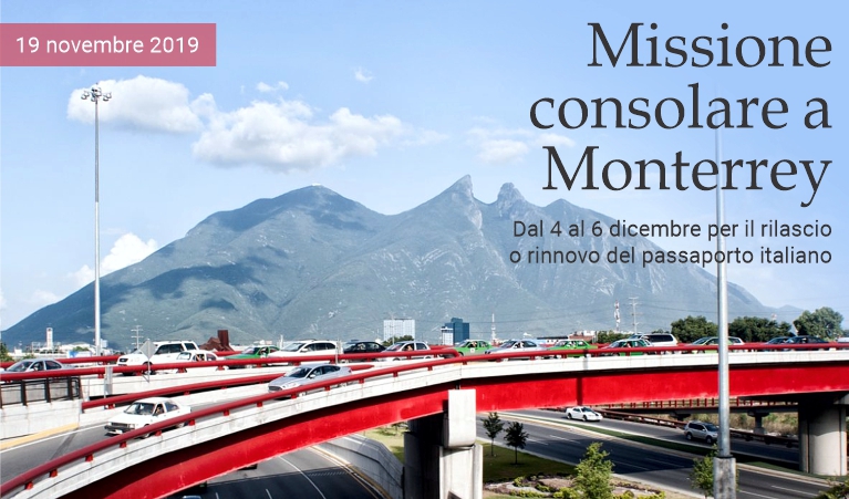 19 novembre 2019 - Da mercoledì 4 a venerdì 6 dicembre il Capo della Cancelleria Consolare dell’Ambasciata d’Italia in Messico, Paolo Epifani, si recherà in missione a Monterrey per la raccolta delle impronte digitali dei cittadini italiani iscritti all'AIRE richiedenti il rilascio o il rinnovo del passaporto. Gli interessati dovranno mettersi in contatto entro giovedì 28 novembre con il Consolato Onorario d’Italia a Monterrey, ai seguenti recapiti: