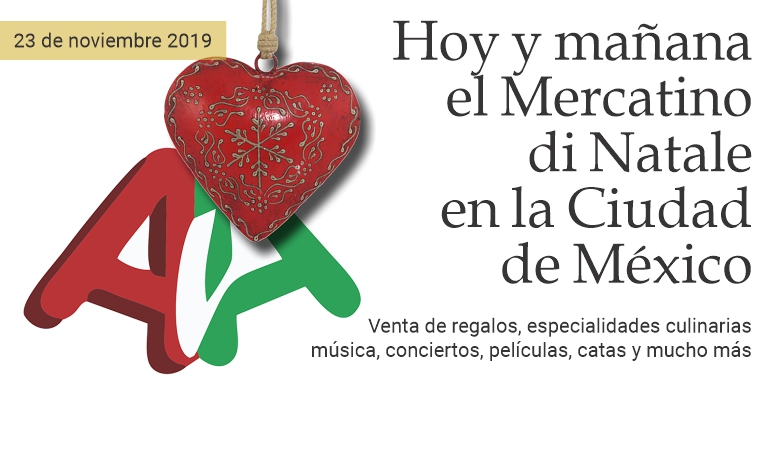 23 de noviembre de 2019 - Hoy y mañana —23 y 24 de noviembre— se lleva a cabo, de 11:00 a 20:00 hrs. con entrada libre, el Mercatino di Natale - Bazar con causa de la Asociación Italiana de Asistencia (AIA) en el Instituto Italiano de Cultura de la Ciudad de México. El evento se lleva a cabo en el marco de la 4ª Semana de la Cocina Italiana, organizada por la Embajada y el Instituto de Comercio Exterior de Italia en México. El programa —además de la ya tradicional venta de regalos navideños, alimentos y bebidas— prevé citas musicales, proyecciones de películas, el festival gastronómico de la regiones Friul-Venecia Julia, Piamonte y Trentino-Alto Adigio y catas de vinos italianos. El tenor mexicano Endo Rivera interpretará arias de la canción clásica napolitana el sábado 23 a las 15:30 hrs, mientras que el domingo 24, respectivamente a las 15.30 y 17:00 hrs., están programadas interpretaciones de piezas de música clásica —con la orquesta Leonardo da Vinci de la Academia de Arte de Florencia dirigida por Aarón Jiménez— y un concierto de música pop del grupo Los Anónimos Italianos. En ámbito cinematográfico, serán presentadas —por Raffaele Moro y Erica Berra— y proyectadas las películas Vinodentro de Ferdinando Vicentini (sábado 23, 15:00 hrs.), Patria de Felice Farina (sábado 23 a las 17:30 hrs.), Bianca come il latte, rossa come il sangue de Giacomo Campiotti (domingo 24, 11:30 hrs.) y L'Oriana de Marco Turco (domingo 24, 15:00 hrs.). Las catas de vinos italianos, organizadas por la Agencia para el Comercio exterior ICE/ITA y el proyecto True Italian Taste, iniciarán el sábado 23 a las 15 hrs. y el domingo 24 a las 12: hrs. Durante los dos días del evento, los asistentes podrán adquirir artículos para regalo de reconocidas marcas y especialidades gastronómicas preparadas por los restaurantes Aromi e Sapori, Maria Ciento 38 y la Cooperativa il Sole. Todo lo recaudado por el Mercatino di Natale será destinado a apoyar las actividades de la Asociación Italiana de Asistencia, organización activa desde el siglo XIX supervisada por el Gobierno de la Ciudad de México y dedicada al apoyo de descendientes y parientes de ciudadanos italianos que se encuentran en situación de dificultad.