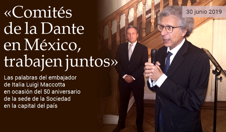 30 de junio de 2019 - En una de sus últimas participaciones en eventos oficiales en México, el embajador de Italia Luigi Maccotta, quien regresará a Roma el próximo sábado tras concluir su mandato en este país latinoamericano, estuvo presente en el evento que la Sociedad Dante Alighieri de la capital organizó el pasado 26 de junio para celebrar el 50 aniversario de la instalación del Comité en la sede de la Colonia Juárez. Ante el presidente del Consejo Directivo del Comité de la Ciudad de México, Othón Leopardi, el Director General, Luca Galizia, y un numeroso grupo de invitados, Maccotta dijo: «Quisiera agradecer la labor de la Dante Alighieri, que es parte integrante del Sistema Italia en México». «Es una institución» —continuó el embajador— «que trabaja y colabora muy bien con el Instituto Italiano de Cultura —aquí está presente el profesor Riccardo Cannelli—, con la Academia de Arte de Florencia —veo en frente de mi a Fabio Caselli, su rector y presidente— y por eso estoy muy agradecido. Es muy importante el trabajo en equipo, ya que en México sólo hay un pequeño grupo de italianos que representa a las instituciones, las asociaciones y el gobierno y quiero comunicar a todos los aquí presentes que la Dante participa plenamente en sus actividades. Permítanme, a partir de este momento, seguir con este breve mensaje en italiano, ya que esta es, por excelencia, la casa de nuestro idioma». «Me gustaría hacer dos comentarios: hace poco leí una interesante audiencia del presidente Andrea Riccardi [titular mundial de la Sociedad Dante Alighieri, nota del redactor], quien, en el Parlamento italiano, dijo que la Dante se está renovando, acercándose a las empresas. Promueve la cultura, pero también la industria creativa a través de una renovación de su red en el mundo, y creo que este es un punto a considerar. Por lo tanto, insto a las empresas y los empresarios —incluidos dos de los grandes en México aquí presentes, Nani Cortesi y Giulio Chiesa— a acercarse cada vez más a esta importante institución cultural». «La segunda notación, dirigida a todos los comités de la Dante Alighieri en México, es la siguiente: intenten establecer una red entre ustedes —creo que son seis las Sociedades constituidas en este país— para crear más sinergias. Esto también es importante. Es extraño que la Dante de la Ciudad de México no tenga contacto con Monterrey, Guadalajara, Mérida ... ya que estas interacciones son necesarias. Reúnanse y encuéntrense, porque hacer las cosas juntos es fundamental». «Para terminar esta breve charla, e inspirándome en la cosmología de Dante, quiero decirles que no sé si en Italia estaré en el infierno o en el purgatorio, pero para mi México fue, sin duda, el paraíso. Muchas gracias a todos». (massimo barzizza / puntodincontro.mx)