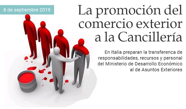 8 de septiembre de 2019 - Italia está analizando la transición del Ministerio de Desarrollo Económico al Ministerio de Relaciones Exteriores de la responsabilidad de los asuntos de política comercial y promocional y del desarrollo de la internacionalización de su base empresarial. Según estimaciones del periódico Il Sole 24 Ore —que publicó la noticia— poco menos de 170 millones de euros en fondos promocionales, 75 millones para la operación de la Agencia ICE, 50 millones para el plan Export Sud y hasta 100 empleados ministeriales podrían ser transferidos a la Cancillería si se llega a un acuerdo final entre los dos ministerios involucrados y la Presidencia del Consejo de Ministros. (massimo barzizza / puntodincontro.mx)