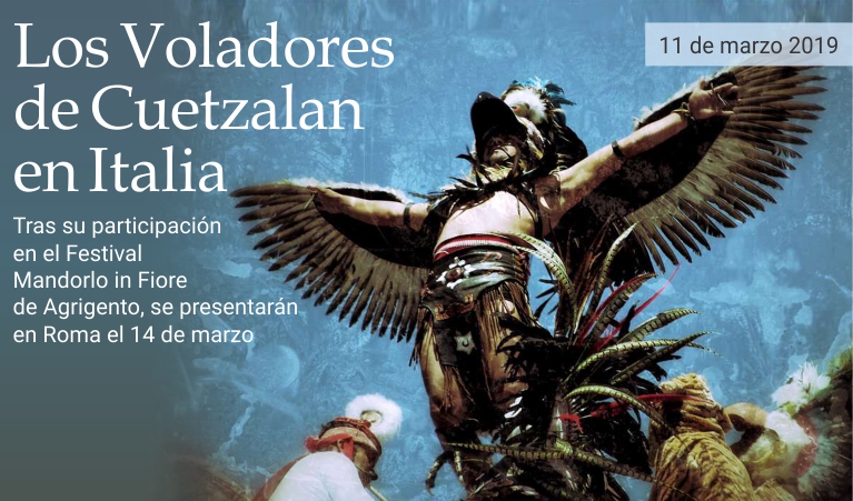 11 de marzo de 2019 - Tras haberse exhibido en el 74º Festival “Mandorlo in Fiore” de Agrigento, Sicilia, del 1 al 10 de marzo, el grupo de los “Voladores de Cuetzalan, Caballeros Águila” de Puebla se presentará en la Universidad Sapienza de Roma el 14 de marzo. Se trata de cinco hombres que escalan un poste de 30 metros de altura, de los cuales cuatro —asegurados por cuerdas— se lanzan hasta llegar al suelo, mientras que el quinto permanece en la cima, bailando y tocando una flauta y un tambor. Es un ritual antiguo y característico del centro de México, que se ha extendido a muchas otras zonas mesoamericanas, a través del cual estos hombres invocaban a los dioses en épocas prehispánicas, solicitando su intervención para detener la sequía. En la actualidad, la ceremonia continúa fortaleciendo el sentido de pertenencia social y cultural de los intérpretes a sus respectivas comunidades, en particular entre los totonacas y los nahuas de la región centro-oriental del país. Es la primera vez que esta tradición ancestral mexicana se presenta en Italia, gracias a la cooperación entre el Parco Archeologico e Paesaggistico della Valle dei Templi, la Ciudad de Agrigento, la Universidad Sapienza de Roma, la Secretaría de Cultura y Turismo de Puebla y la Secretaría de Relaciones Exteriores de México, que han trabajado en sinergia para hacer posible la iniciativa. La presentación en La Sapienza —coordinada por su Departamento de Historia, Antropología, Religiones, Arte y Entretenimiento— se llevará a cabo en la Aula Magna de Rectoría el jueves 14 de marzo a las 6 pm.