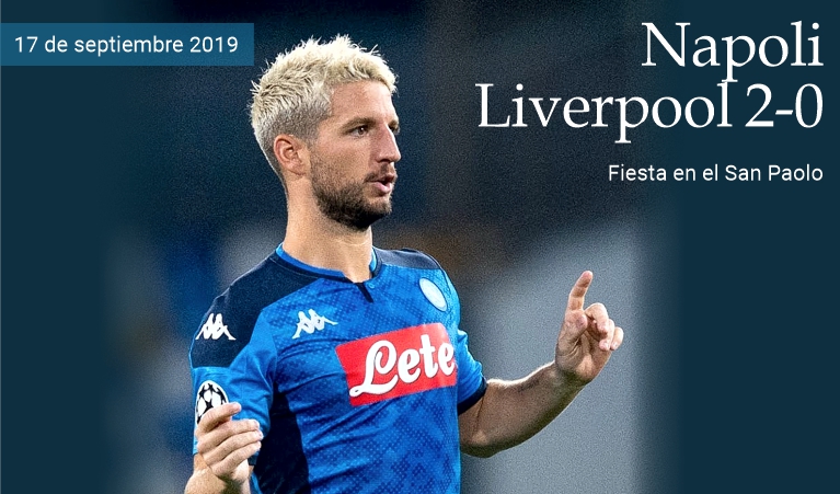 17 de septiembre de 2019 - El Nápoles de Hirving Lozano ganó 2-0 al vigente campeón Liverpool. Los goles fueron obra de Dries Mertens al 82' en penalty y de Fernando Llorente al 90'+2. Al minuto 7, el Chucky marcó lo que parecía el primer tanto del partido, pero el árbitro lo anuló por un claro fuera de lugar. Fue un Nápoles para aplaudir, que se mantuvo firme contra los campeones europeos en un partido muy equilibrado tanto en el juego como en las ocasiones. Primero las grandes atajadas de Adrián tras un disparo de Mertens y de Meret sobre Salah, luego el penal convertido por el belga y la firma del atacante español en el final. (massimo barzizza / puntodincontro.mx)
