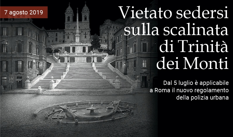 7 agosto 2019 - Dallo scorso 5 luglio è applicabile a Roma il nuovo regolamento di polizia urbana che vieta di sedersi o sdraiarsi sui gradini della scalinata di Trinità dei Monti, considerata a tutti gli effetti un “monumento”. Sul celebre raccordo tra la chiesa della Santissima Trinità e la sottostante piazza di Spagna —realizzato tra il 1723 e il 1726 su progetto dell’architetto Francesco De Sanctis (1693-1740)— era già stabilito il divieto di bivaccare con cibo e bevande, a cui si aggiunge adesso questa nuova e più stringente disposizione. Per i trasgressori è prevista una sanzione di 250 euro, che potrà arrivare fino a 400 in caso di comportamenti gravi, come sporcare o danneggiare il monumento. Gli agenti della polizia municipale stanno presidiando la zona, invitando chi si siede ad alzarsi subito. (massimo barzizza / puntodincontro.mx)