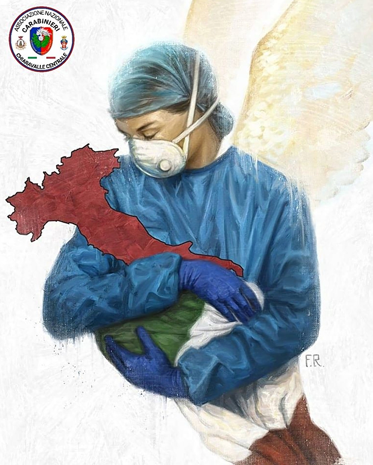 11 de marzo de 2020 (07:45 hrs.) - Una imagen elocuente: una doctora que sostiene a Italia, parcialmente envuelta en el Tricolor, en sus brazos. La emergencia por el Covid-19 tiene la fuerza para unir a los italianos y este dibujo se convirtió rápidamente en uno de sus símbolos. La ilustración fue publicada por la Asociación Nacional de Carabinieri de Chiaravalle Centrale, un municipio del sur del país, y en poco tiempo el mensaje se volvió viral. El presidente, Luca Sanzo, comentó: «Es una imagen muy hermosa y conmovedora que nos envió el autor Franco Rivolli y que quisimos compartir dado el momento que todo nuestro país está atravesando por la emergencia del coronavirus».